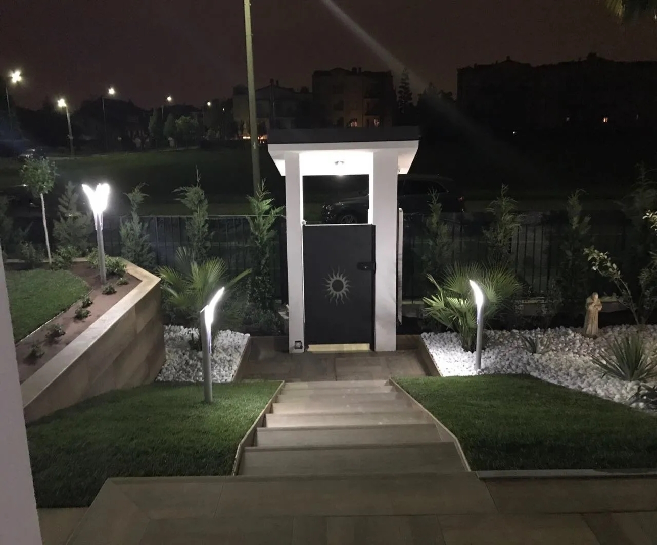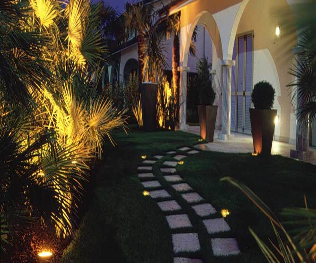 Highlight garden features with diverse lighting.