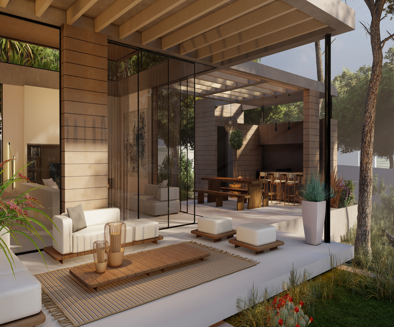 Pergolas, gazebos or solar awnings for a comfortable outdoor experience.